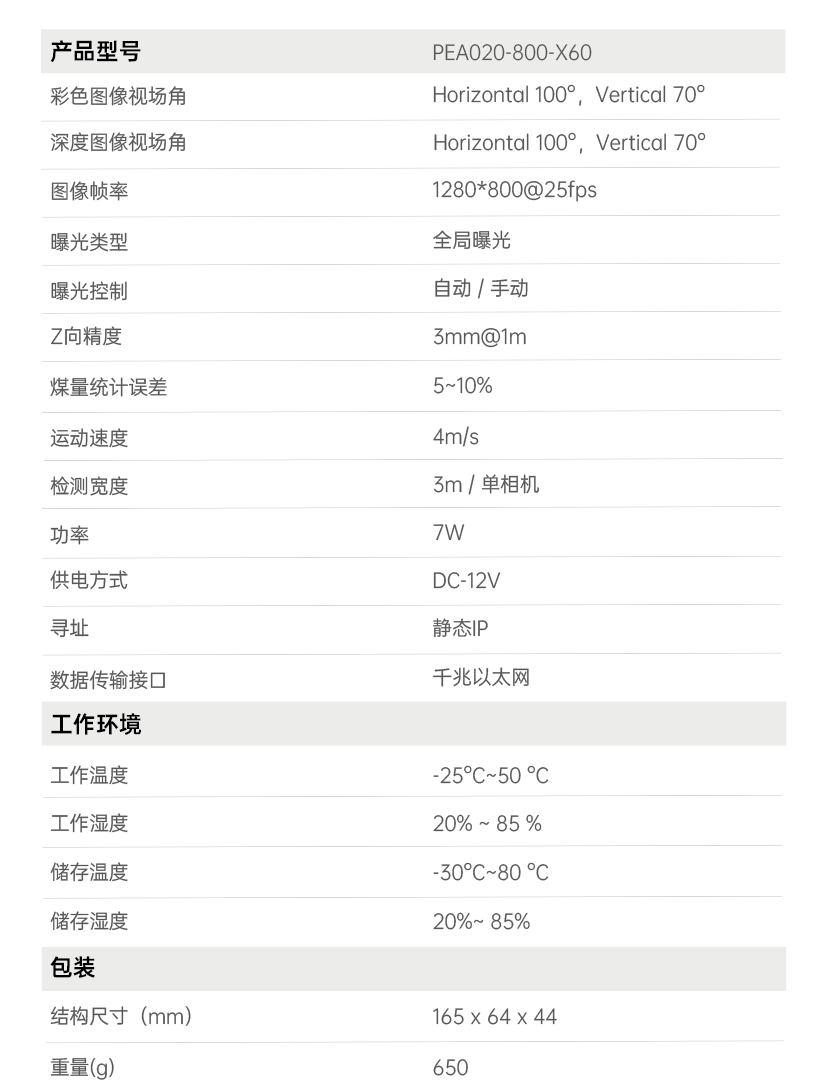 首页 动态 场景应用丨ylzz线路检测智能煤流监测系统全新升级,赋能自动化煤流管控 场景应用丨ylzz线路检测智能煤流监测系统全新升级,赋能自动化煤流管控 场景应用 2024-07-08 浏览量:2242 煤矿行业中,生产安全和节能降耗是两大痛点问题,在实际运煤过程中,跑偏、摩擦生热、堆煤、皮带撕裂等故障常造成重大安全事故,运输轻载和空载仍匀速运行会出现“以小拉大、无效运转”,导致能源大量浪费。 目前,传统测量设备智能化检测程度低,维护人员多,人力成本高,影响生产效率;皮带秤是采用较多的称重仪器,而在体积测量场景不易直接实现,而激光三维扫描测重系统价格昂贵,难以普遍使用。 如何通过提升皮带输送机采集精准数据能力,减人降耗,提高安全防范,进行自动化管控成为煤矿行业亟待解决的问题。 ylzz线路检测智能煤流监控管理系统,基于双目立体视觉技术实现精准的数据检测和输送带控制。系统由3D相机硬件、嵌入式计算平台、流量监测平台构成,实现输送带煤量监测统计,堆煤监测、块煤监测、异物监测、跑偏监测、撕裂监测等功能,以采集的精准数据为智能调速、皮带运输安全检测等智能化改造提供助力,达到减人增效,节能降耗的目标。该系统环境环境适应强,部署简单,无需改造现场环境即可安装。 司眸®智能煤流监测管理系统应用于某煤流监测项目 产品介绍 ylzz线路检测智能煤流监测管理系统采用自研非接触智能煤流RGBD相机,搭载输送机煤流监测智能管理平台,相机在AI算法加持下,能实时采集到高质量煤流RGBD数据,实现高速运输的煤炭皮带机进行多种智能化场景应用,易于部署,通过千兆网口直接对接PLC或服务器,安装便捷,无需改造现场环境,对环境光适应性强,不易受皮带颜色信息干扰。 系统应用功能 煤流统计 通过智能煤流RGBD相机采集动态输送机上的煤矿体积的三维数据,输出深度和彩色数据信息。该功能还可应用于输送带智能调速,生产数据管理,库存管理等智能化升级改造。 支持皮带速度:4m/s 粉煤煤量统计误差:≤5% 块煤监测 通过立体视觉技术,测量块状物的长宽数据,识别大块煤,输出高精度数据。 支持皮带速度:4m/s 异物监测 通过智能算法可识别大块矸石、铁器(锚杆、角钢)等非煤异物。 煤堆监测 在出料口、传送带上实时监测堆煤高度,实时输出堆煤结果。由此实现输送机安全监控,提前预防堆煤事故发生。 堆煤高度检测精度:毫米级 检测周期:秒级 最佳检测皮带宽度:600~2400mm 跑偏监测 根据智能相机安装位置定位皮带边缘位置,进行位置标定及设定跑偏阈值,通过获取的输送带三维尺寸位移信息,对皮带左右边缘位置与阈值比较并进行跑偏判断,输出跑偏结果。 左右皮带边缘定位精度:毫米级 检测周期:秒级 最佳检测皮带宽度:600~2400mm 智能煤流RGBD相机特点 01 高精度测量,保障数据准确 在高速动态检测上,测量精度可达毫米级,测量结果与实际煤量误差小于5%; 支持设备端断网续存,联网后相机前端与后台系统可保持数据同步。 02 适应性高,鲁棒性强,复杂场景可运行 抗强光、反光干扰:可抗强光、反光,自研算法支持煤矿等深色、黑色物体精准测量; 抗阴影干扰:在室内、地下、夜晚能稳定测量,无需补光; 多类型输送机适配:可适配平直型、U型、V型等各类型输送机; 适应于矿场粉尘、煤炭表面有水渍的情况; 结合算法对皮带输送时产生的震动进行自适应调整,减少测量误差; 针对井下场景可选用防爆硬件及井上应用工业级硬件设备,满足应用需求。 03 部署简单,安装便捷 出厂相机内参标定,可快速部署集成,无需改变现场环境即可安装,实施速度快,调试简单,系统易于维护。 04 接口丰富,数据直传 丰富的系统对接接口,可直接对接PLC、变频器、服务器,快速完成精细化皮带控制。 05 大景深、大视野,多范围应用 测量皮带宽度达2.4米; 测量煤堆高度达1.5米; 设备组合方案可支持更大视野。 05 边缘计算架构,实时测量 使用边缘计算架构,将多种智能算法在边缘端实现,保证数据实时传输。 RGBD相机参数 ylzz线路检测深耕机器视觉领域近十年,垂直领域技术积累深厚,经过长期自主研发,现已推出系列体积测量方案,包括智能煤流监测管理系统、RGBD大货体积测量、动态包裹体积测量、静态包裹体积测量等,能够满足各领域不断增加的业务需求。 我们一直秉持以服务客户为中心,将技术与产品创新作为对客户、行业和社会应尽的责任。未来,ylzz线路检测将坚持科技创新,始终致力于数字化转型升级及智能化发展,促进全社会生产效益提升。 上一个:场景应用丨ylzz线路检测3D视觉+AI深度学习,助超大型货物体积测量更准,更稳,更易用 返回列表 下一个:3D机器视觉可以完成许多2D机器视觉无法完成的任务。 更多新闻推荐 端到端 更易用丨人加®散料运输动态监测与预警系统全新上市 新品上市 2025-02-20 小尺寸 更灵活丨人加3D相机PEA020-800-Y80S上新,助力多场景智造升级 新品上市 2024-09-29 目前主流3D视觉技术各有什么优劣势?如何选择最Match的工业3D相机? 技术科普 2024-08-12 【最全选型攻略】挑选合适的工业相机,必须提前考虑12要素! 工业相机 2024-07-16 场景应用丨ylzz线路检测3D视觉+AI深度学习,助超大型货物体积测量更准,更稳,更易用 场景应用 2024-06-04 超高读取 极致易用丨ylzz线路检测发布RGBD动态包裹体积测量智能相机 新品发布 2024-04-26