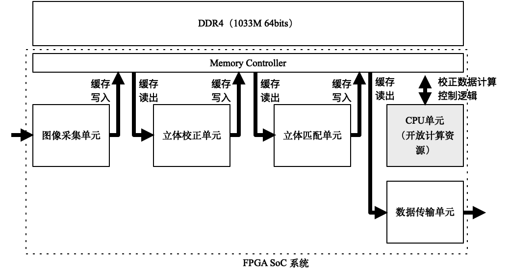 第三代架构延续了上一代逻辑单元+ CPU 的异构设计方式,在上一代的基础上重点突破了分辨率提升带来的内存带宽技术瓶颈和片上存储资源技术瓶颈,概要设计图如下: