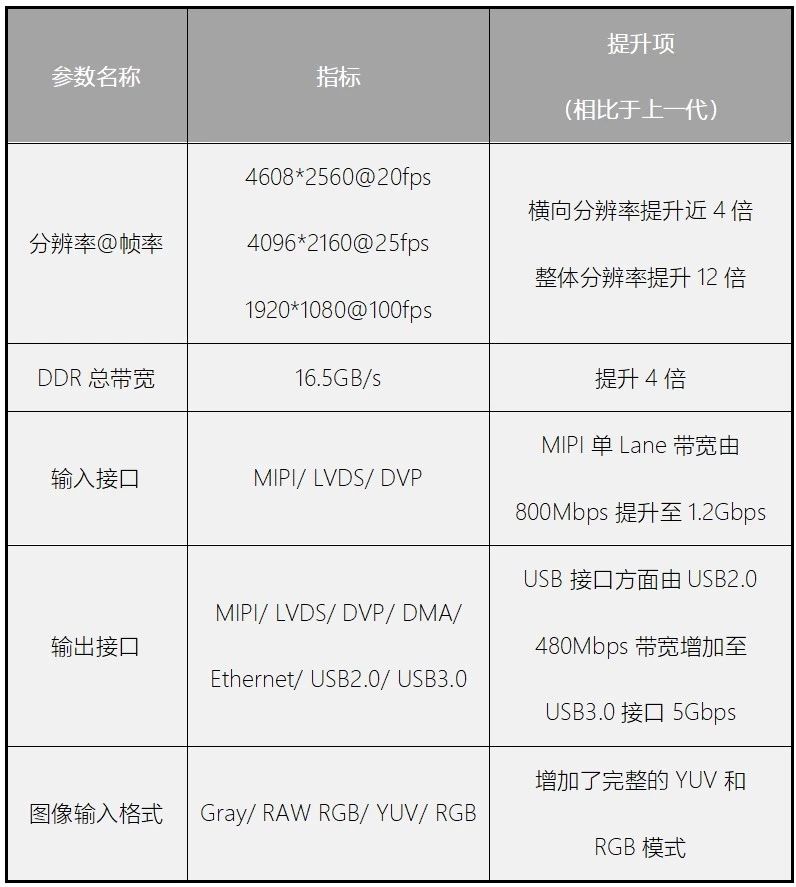 综合以上分析,人加第三代双目视觉感知引擎架构在设计上仍然延续了上一代的逻辑单元(FPGA)+ CPU 的异构计算架构,新架构采用 DDR4 64 位存储架构,内存存储带宽相对于上一代提升了 4 倍,经过一系列的算法加速设计创新,达到横向分辨率提升近 4 倍,整体分辨率实现了近 12 倍的性能提升。